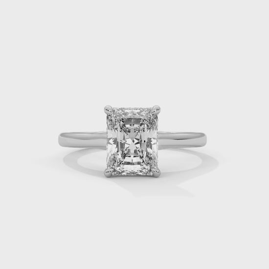 В основе изделия лежит завораживающий бриллиант огранки «радиант» весом от 1 до 3 карат , сертифицированный IGI за непревзойденный блеск и подлинность. Ослепительное сияние бриллианта изящно обрамлено элегантным кольцом из 14-каратного золота , выполненным на ваш выбор из жёлтого, белого или розового золота , весом около 2,5 грамма .
